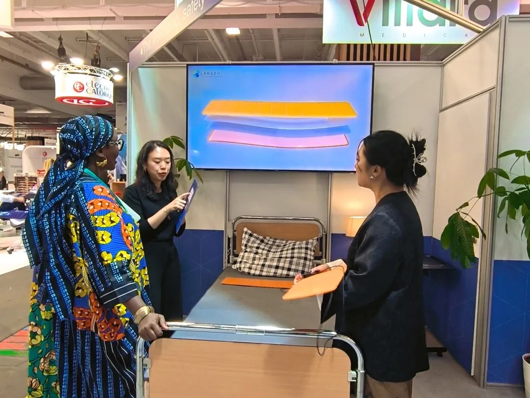 我们的展台吸引了来自医疗行业的专业人士,包括医养领域的康复专家、提供养老服务的机构商、以及寻找合作机会的商业伙伴等各类观众。他们纷纷驻足观看我们的宣传片,并表示了对琅智系列产品的好奇,与琅智团队的销售小姐姐和小哥哥们进行交谈。一些客户还表达了对琅智系列数字化健康产品以及我们致力于服务全球数亿康养人群的理念表现出了浓厚的兴趣。